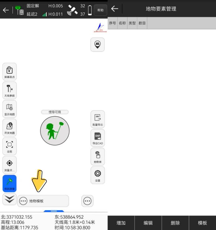成功创建地物要素模板后,连接主机设备,进入采集界面。